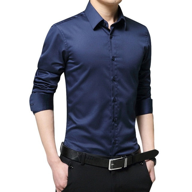 New Men's Shirt Long Sleeve Casual Shirts Men Dress Slim Solid Business Dress Shirt Spring Autumn Men's Dress Shirt With Button