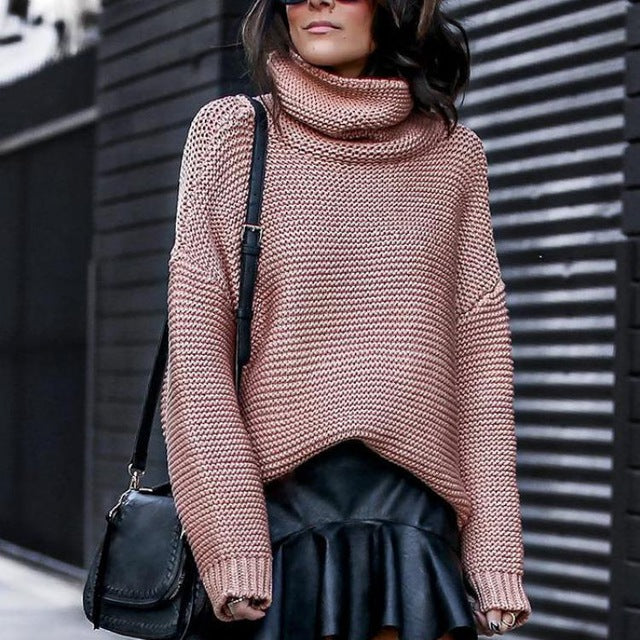 Casual Autumn Winter Turtleneck Sweater Women Loose Oversize Solid Knitted Sweaters Warm Long Sleeve Pullover Sweater Black Pink