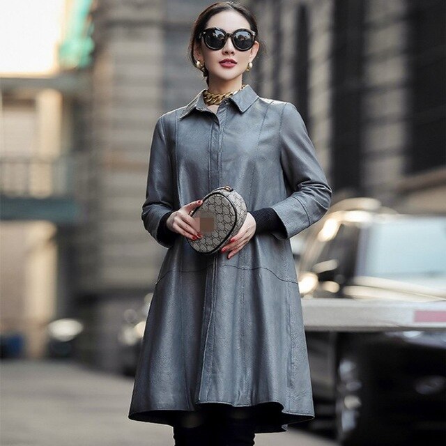 Luxury Elegant 100% Genuine Leather Long Jacket Female Spring Loose Sheepskin Windbreakers Streetwear Party Office Lady Overcoat