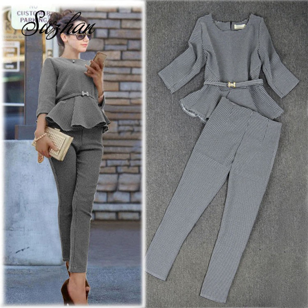 Suzhan Spring Autumn Fashion Women's Business Pants Suits  Pattern Ruffles Suits for Women 2 Pieces Set Work Office Lady Suit