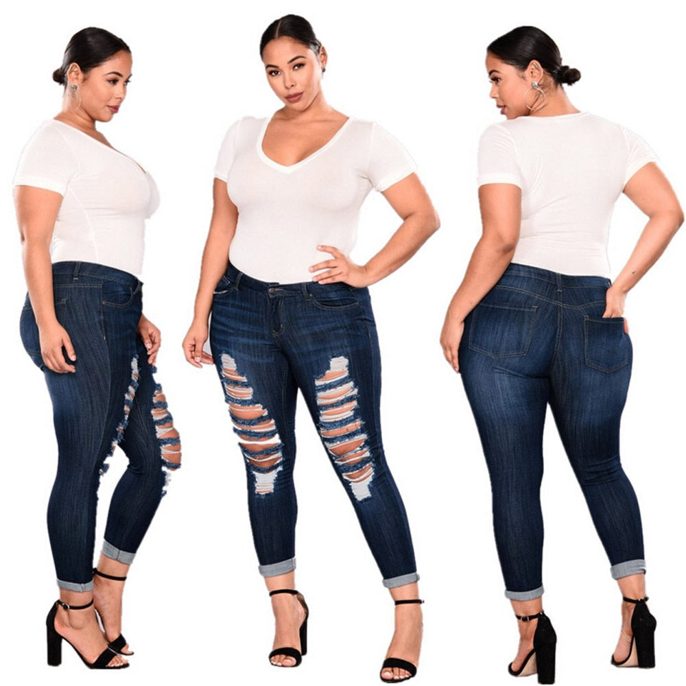 FREE OSTRICH 7xl plus size women Ripped Stretch Slim Denim Skinny Jeans Pants high waist skinny jeans Trouser jeans slim woman